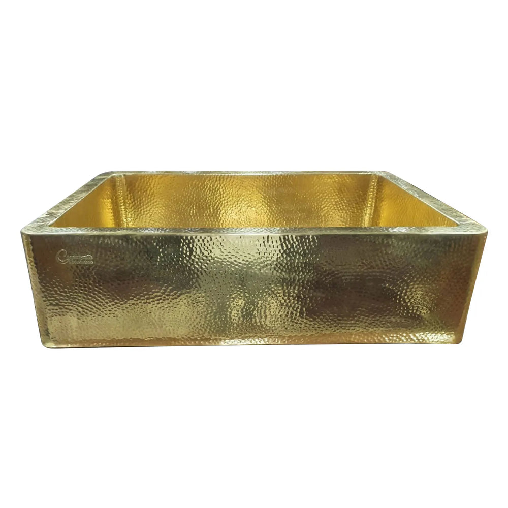 Single Bowl Hammered Front Apron Shining Brass Kitchen Sink