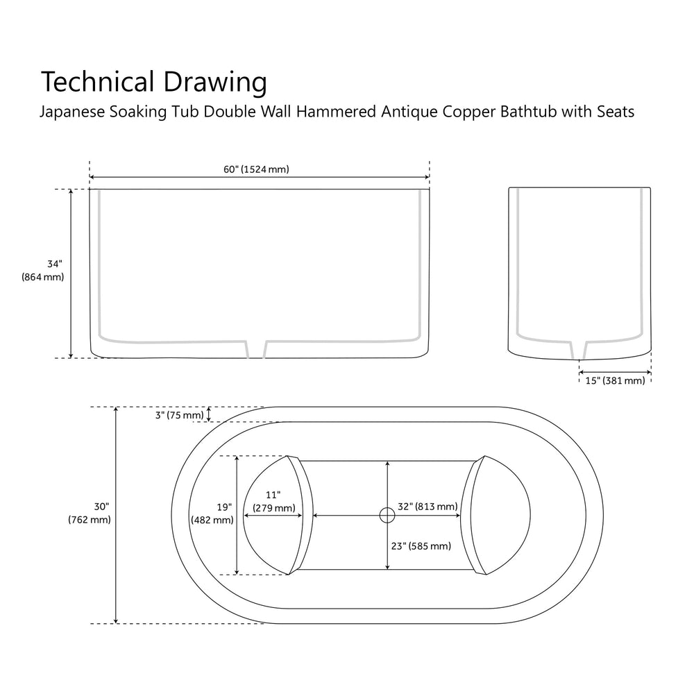 This Japanese-style double-wall copper bathtub offers you spa-like comfort with its dual integral seats. It is a deep soaking copper bath allowing you to immerse and soak yourself completely for a relaxing rejuvenating bath.